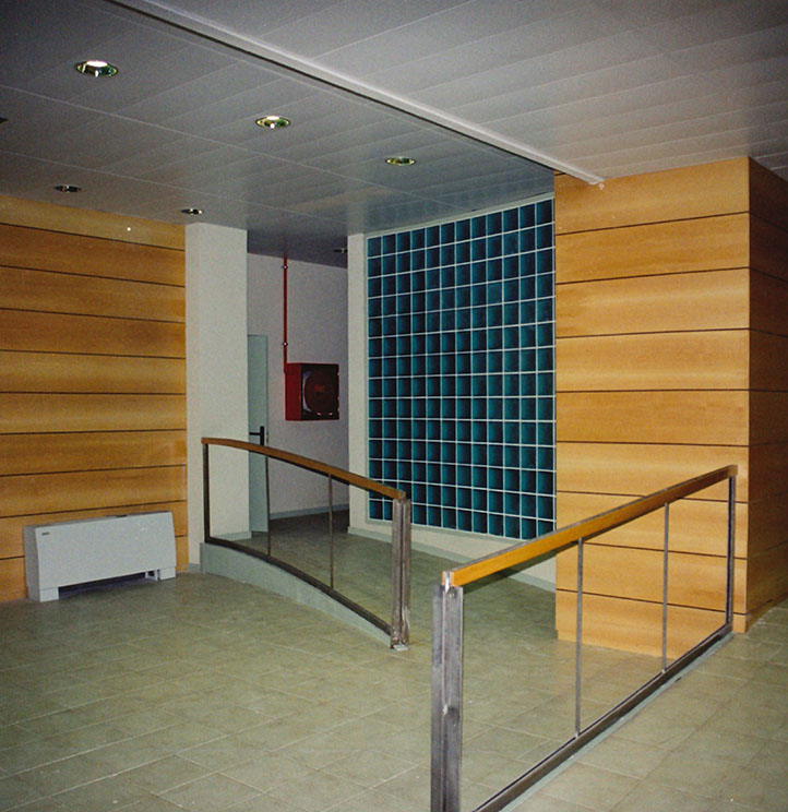 Obra muy singular por el ingenio desarrollado en el proyecto para recuperar un espacio de muy mala iluminación en un semisótano sobre un aparcamiento, y crear un centro para mayores luminoso en contacto con el exterior.