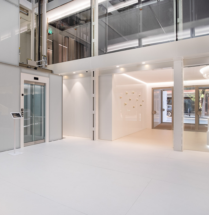 Escalera de comunicación y núcleos de ascensores.