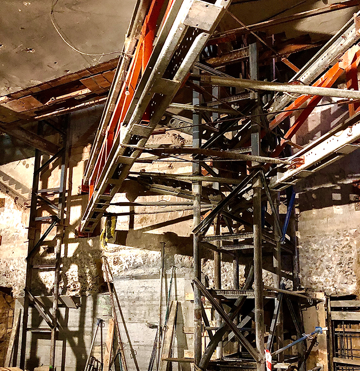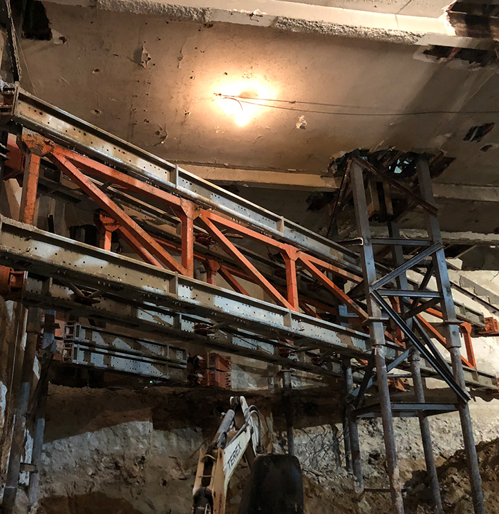 Excavación de tercer nivel de sótano con apeo integral de estructura existente.