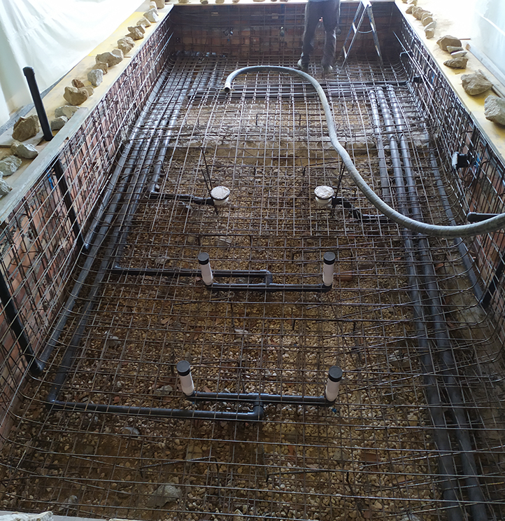 Construcción de una nueva piscina interior, ampliación del vaso de piscina interior.